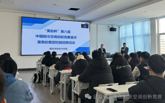 为加快实施创新发展驱动战略,促进制冷空调行业创新人才培养,“美的杯”第八届中国制冷空调创新竞赛(以下简称“竞赛”)在12月陆续走访了北部赛区5所高校:哈尔滨商业大学,哈尔滨工业大学,东北大学,大连海洋大学,大连理工大学。针对此次竞赛的作品征集、评审流程和奖励机制进行了详细的说明,并发放精美礼品,得到广大师生的热烈支持。